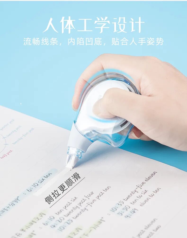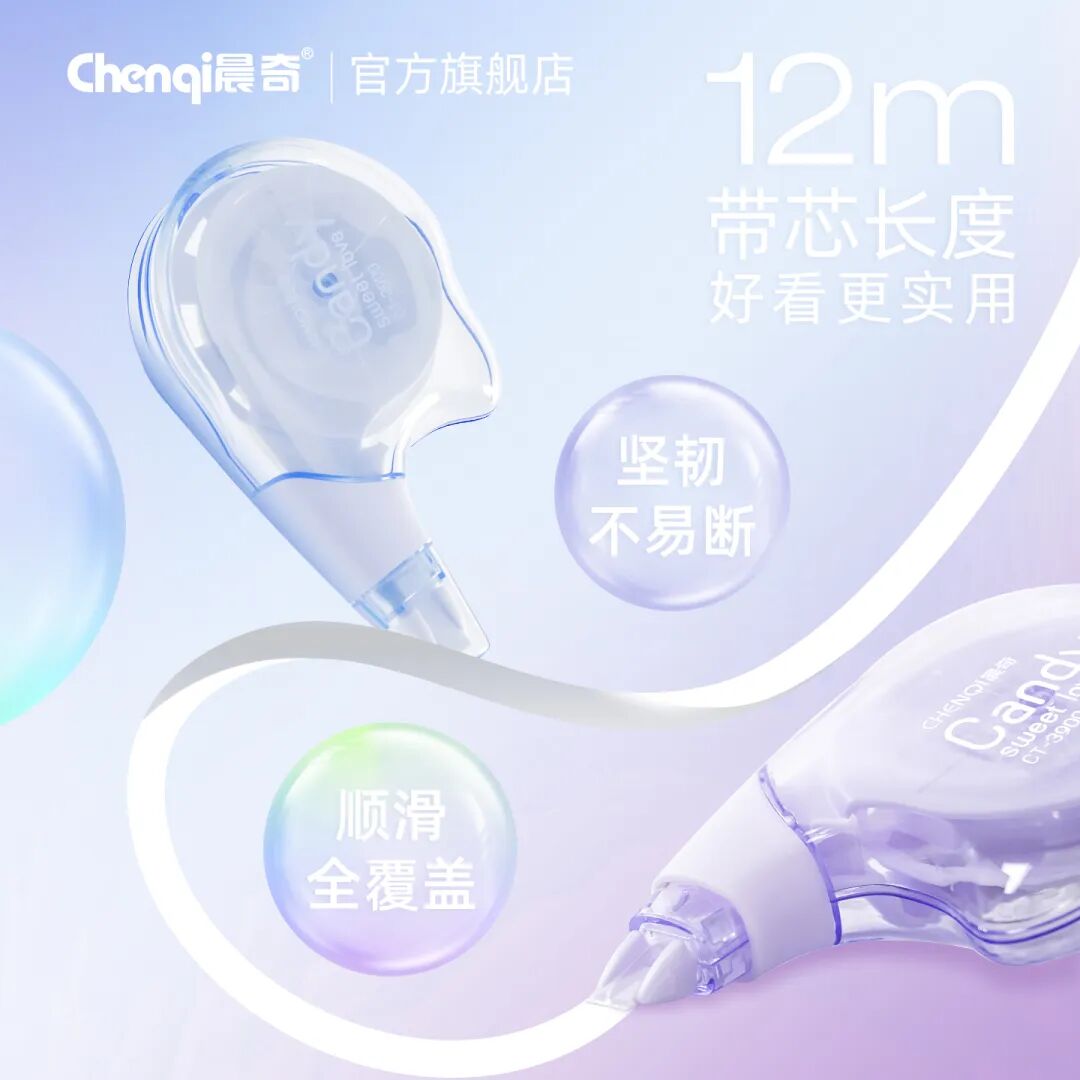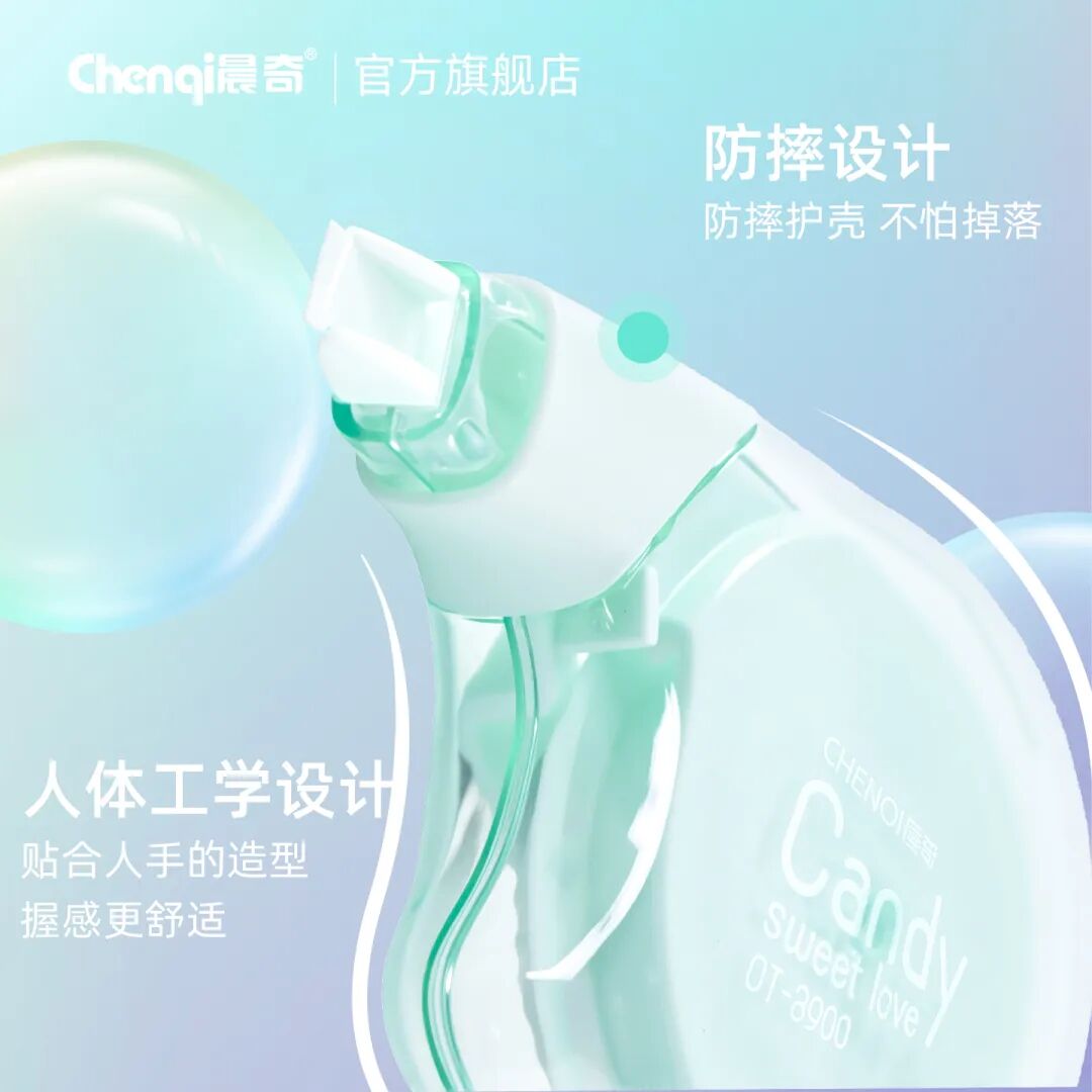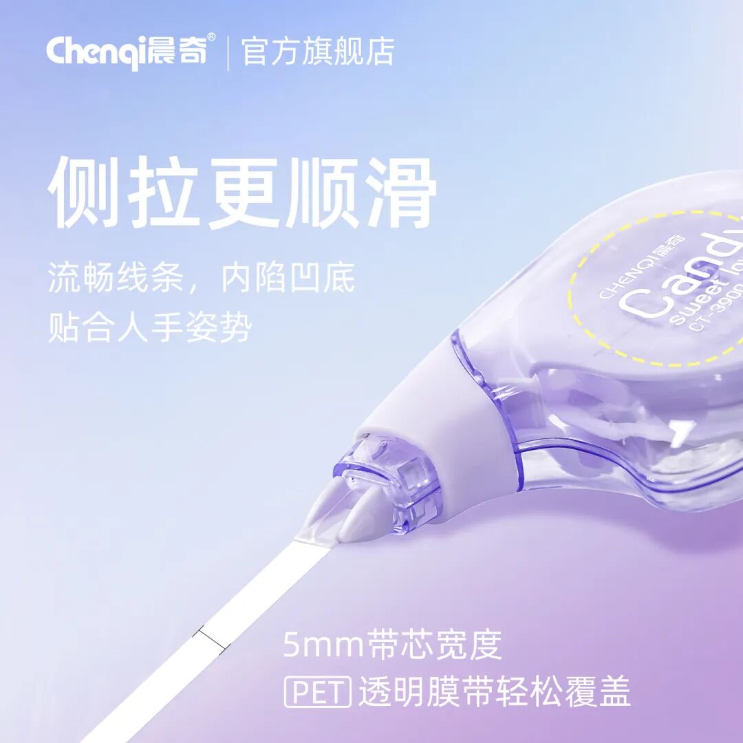 晨奇文具|產(chǎn)品資訊 更平穩(wěn),更輕盈!這款高顏值糖果修正帶,種草“握感”,舒適修正~發(fā)表時間:2025-10-29 10:15 小小一個握起來也像糖果, 但它真正的甜蜜, 在于讓你使用起來更平穩(wěn)、輕盈。 今天, 我們要為你種草一款從“握感”開始, 就改善你使用體驗的修正帶, 「糖果握高顏值修正帶」。 它不只是一款修正工具, 更是一件掌上藝術(shù)品, 一次關(guān)于舒適的溫柔革命。 把春夏的甜蜜,握在手里 ![]() 我們摒棄了傳統(tǒng)冰冷的設(shè)計, 從繽紛的糖果世界中汲取靈感, 為你帶來四款治愈系色彩: 果糖-蜜桃:清甜軟糯,喚醒少女心。 棒糖-藍靛果:神秘而優(yōu)雅,安靜思緒。 脆糖-薄荷:清新凜冽,為你提神醒腦。 軟糖-香芋:溫柔浪漫,治愈不開心。 這哪是修正帶? 分明是能裝進口袋的幸運糖果! 光是擺在桌上, 就能點亮一整天的好心情。 獨家黑科技:為什么它更懂你的手? 如果說顏值是敲門磚, 那么它的設(shè)計, 才是我們真正想與你分享的驚喜! 請仔細觀察它的造型: 它不是筆直的, 而是帶有流暢的線條的。 帶頭側(cè)握更穩(wěn)定 ![]() 側(cè)握的姿勢讓你對修正帶的掌控更穩(wěn)定, 在涂劃短線條、 修正單個字符或進行精細修改時, 這種穩(wěn)定性尤為重要, 可以有效避免修正帶在紙上打滑或跳動。 人體工學(xué)設(shè)計 ![]() 其形狀能自然引導(dǎo)手指放在正確的位置, 完美貼合人手自然握筆的弧度與重心, 長時間使用也不易疲勞。 機身內(nèi)陷凹底 當(dāng)你拿起它, 手指會自然而舒適地落在凹陷處, 虎口再無壓力。 每一次劃動, 都如臂使指,流暢順滑。 實力派“硬糖” 光好看好握可不夠, 作為一款修正帶, 它的本職工作同樣出色! ![]() PET透明強韌帶膜: 不易斷、覆蓋力強, 讓修改處平整如新; 5mm黃金寬度: 精準(zhǔn)匹配你的書寫習(xí)慣, 無論是中文注釋還是英文單詞, 都能完美覆蓋; 12m超長帶芯: 藏在小巧機身里的, 是長達12米的續(xù)航能力, 一顆就能陪你度過漫長的書寫時光。 ![]() 拔帽設(shè)計&防摔設(shè)計: 完美保護帶頭,杜絕干涸與灰塵, 即使不小心摔落在地,也毫發(fā)無損。 ![]() 掌心尺寸,輕盈便攜: 輕松滑入筆袋、口袋甚至零錢袋, 讓你的精致, 隨時隨地,觸手可及。 這枚糖果,屬于誰?